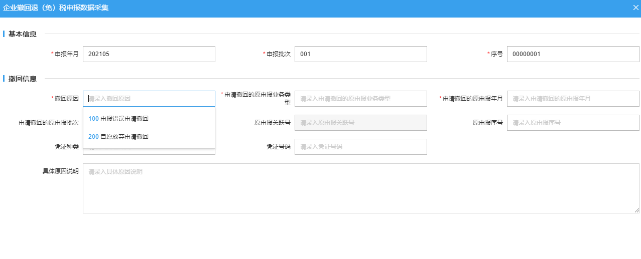 三、在“企业撤回退免税申报”中填写需要撤回的申报记录数据即可,如下图图3所示: