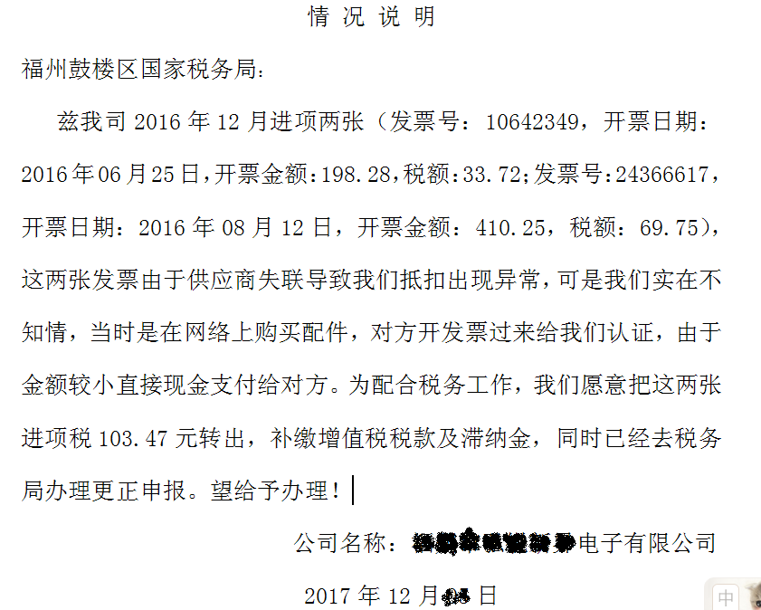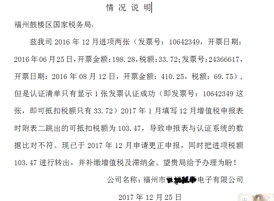 3、进项比对不符情况说明书