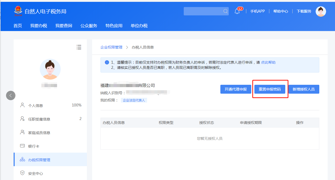 第四步点击“重置申报密码”设置新密码。如下图所示: