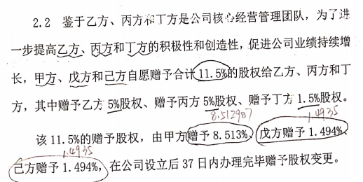 1、考虑到甲方未来需要对核心员工进行股权激励,以及未来激励份额具有一定的不确定性,所以甲方在A合伙企业预留12%的股权比例,用于未来核心员工的股权激励。以保证未来甲方对核心员工同比例稀释股权时,甲方在A合伙企业的股权仍然大于1%。