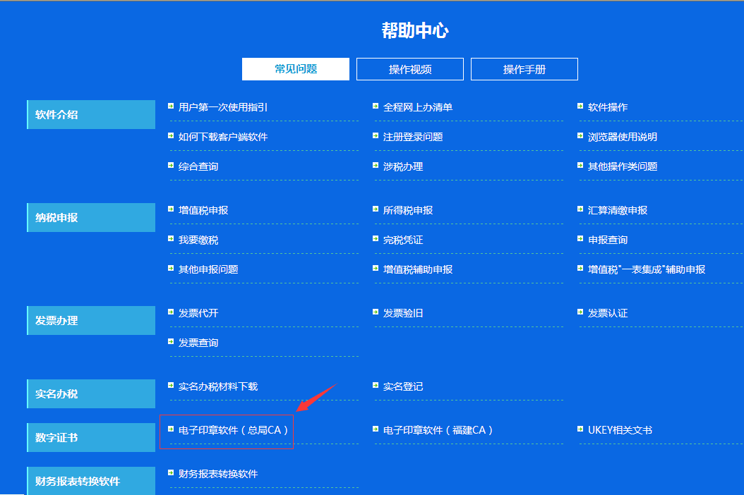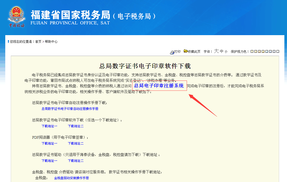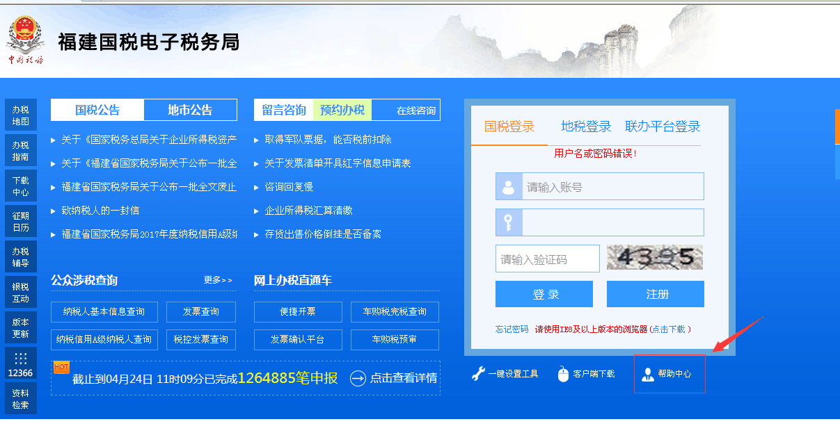 一、登陆福建国税电子税务局,点击“帮助中心”,如下图: