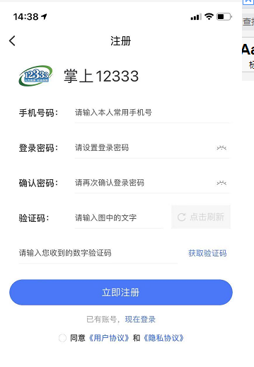 一、手机下载安装“掌上12333”,完成个人注册。如下图所示: