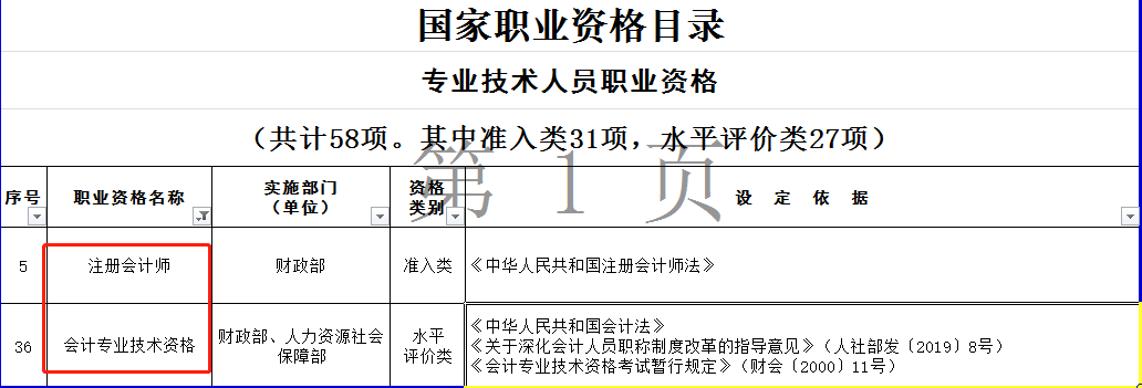 财务工作人员最关心的会计证和税务师证也在国家职业资格目录中。如下图所示: